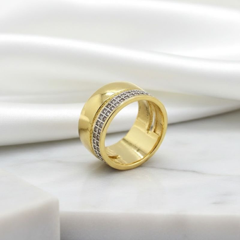 Anel Aparador com Zircônias Banhado a Ouro 18k – Elegância e Brilho para Valorizar Seu Estilo 💛✨