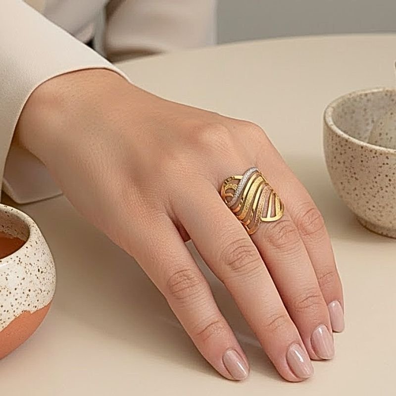 Anel com Ródio Banhado a Ouro – Dupla Sofisticação em Um Só Design ✨💛⚪