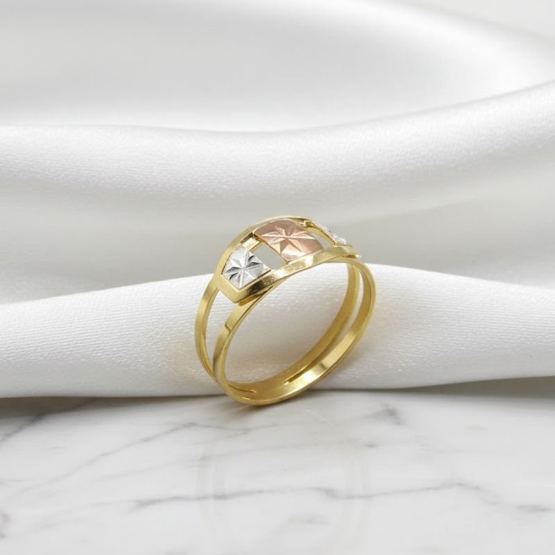 O Anel Diamantado 3 Cores Banhado a Ouro 18k combina a sofisticação do acabamento diamantado com a beleza dos três tons de ouro — amarelo, branco e rosé. Uma peça versátil e moderna que acrescenta brilho e estilo únicos ao seu look.