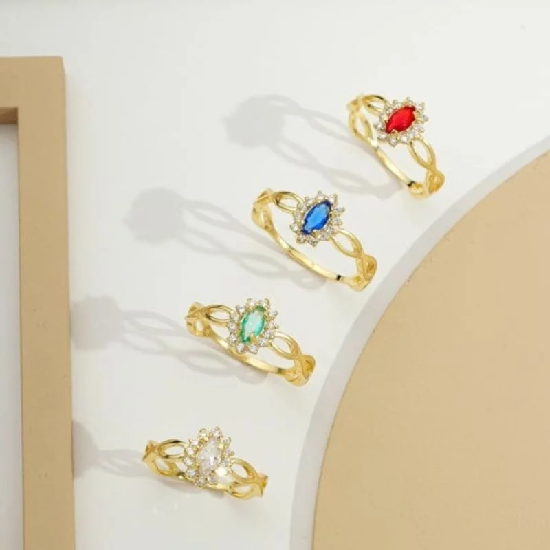 Peça banhada a Ouro 18K com pedra central colorida, garantindo brilho duradouro, resistência e qualidade superior.