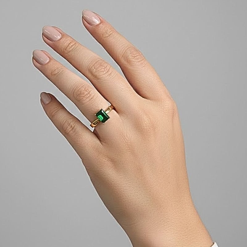 Anel Pedra Quadrada Verde Banhado a Ouro 18k – Impacto e Elegância em Cada Faceta 💚✨