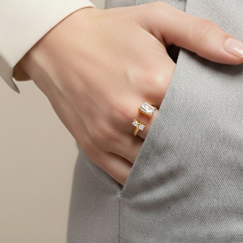 Anel Regulagem com Zircônias Quadradas Banhado a Ouro 18k – Versatilidade e Brilho em Design Ajustável ✨💎