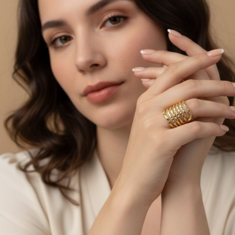 Anel Banhado a Ouro 18k – Impacto e Sofisticação em Uma Peça Única 💛✨
