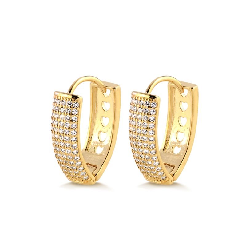Uma joia que combina o brilho das zircônias com o charme dos detalhes vazados em formato de coração. Este brinco é perfeito para quem ama peças românticas, mas com um toque sofisticado.