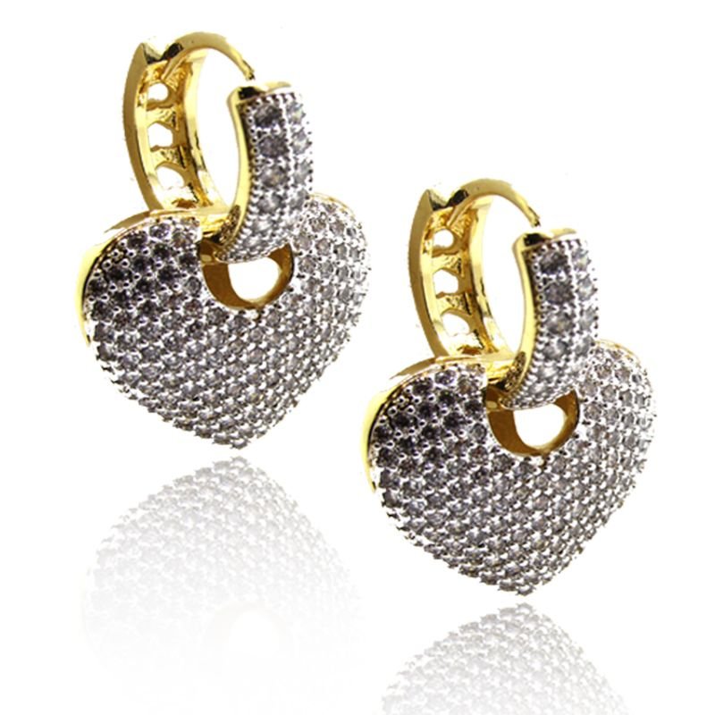 Brinco Coração Cravejado com Zircônias – Amor que Brilha Intensamente 💖✨