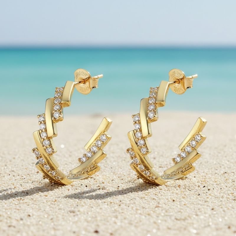 ✨ Argola Esculpida com Zircônias – Brilho e Design em Perfeita Harmonia