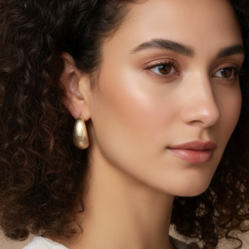 ARGOLA LIXADA LARGA FOLHEADA – ELEGÂNCIA CONTEMPORÂNEA COM ACABAMENTO MODERNO ✨