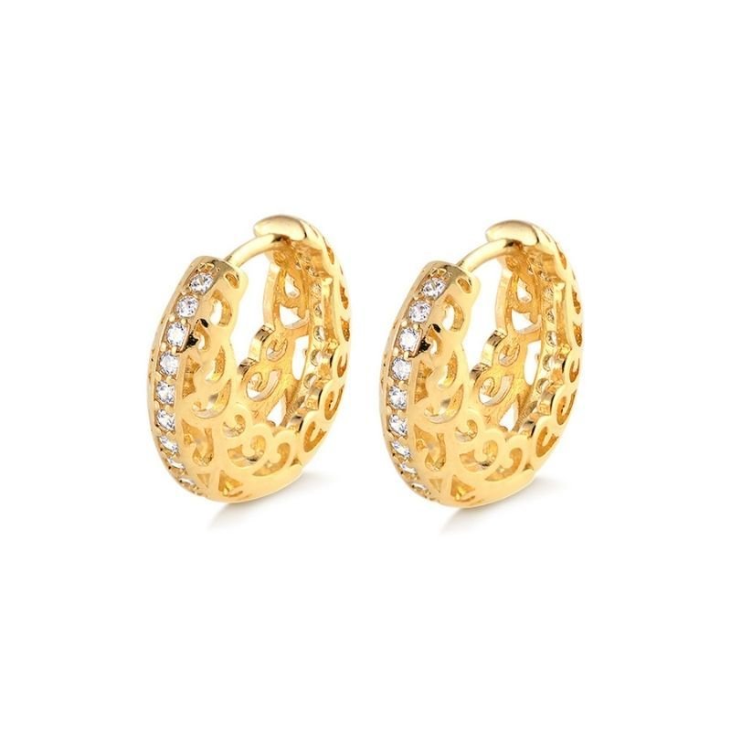 Um verdadeiro clássico com um toque artístico! Essa argola dourada combina o brilho das zircônias com um design vazado floral sofisticado. A leveza do recorte se une ao acabamento impecável, criando uma peça que ilumina o rosto com delicadeza e presença.