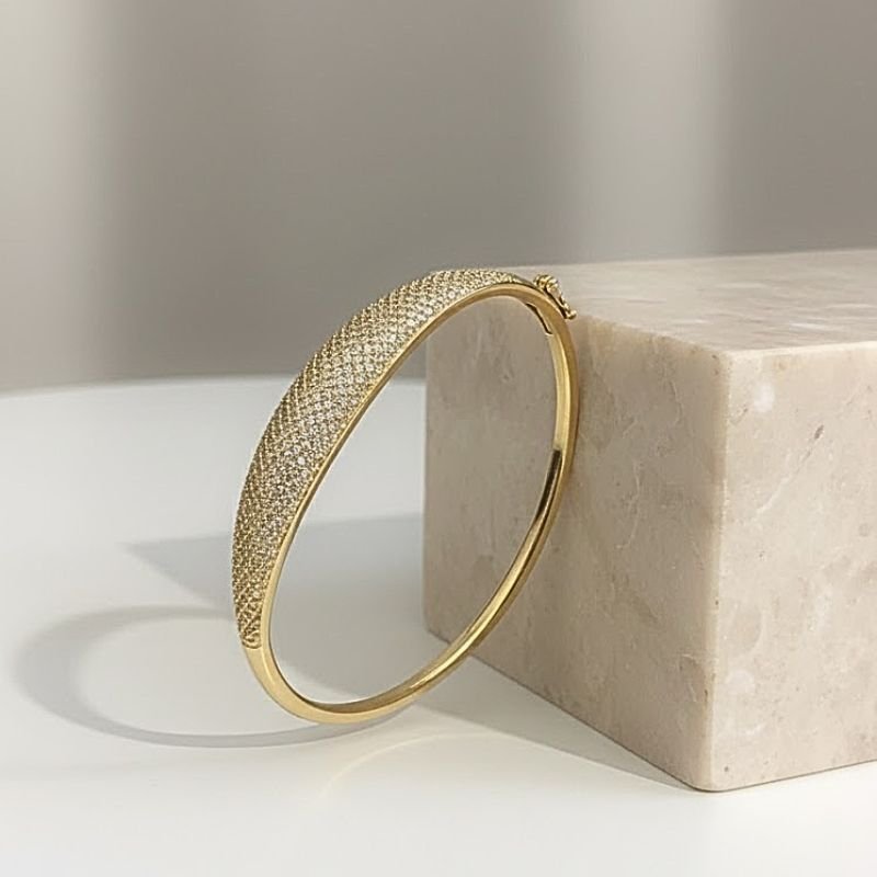 BRACELETE ARREDONDADO COM ZIRCÔNIAS – BRILHO SUAVE, ELEGÂNCIA ABSOLUTA 💫💎