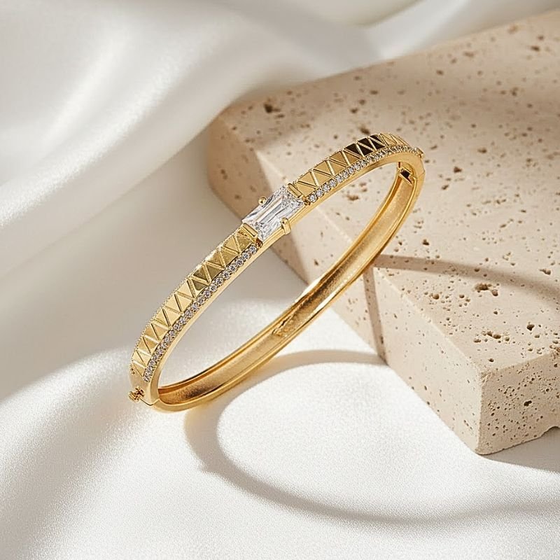 BRACELETE COM PEDRA QUADRADA E ZIRCÔNIAS – SOFISTICAÇÃO EM CADA DETALHE ✨💠