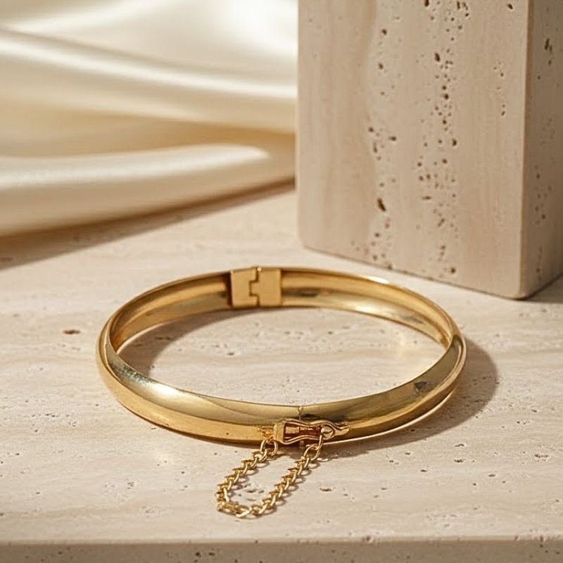 📌 Detalhes: Bracelete banhado a ouro 18K, acabamento diamantado com brilho intenso, modelo com pega ladrão, design elegante e estruturado