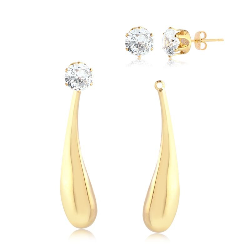 Um brinco, dois estilos! Essa peça elegante traz a praticidade do modelo 2 em 1: use apenas a zircônia como ponto de luz para o dia a dia ou acrescente a parte alongada dourada para um visual mais sofisticado à noite. Perfeito para quem ama versatilidade sem abrir mão do glamour!
