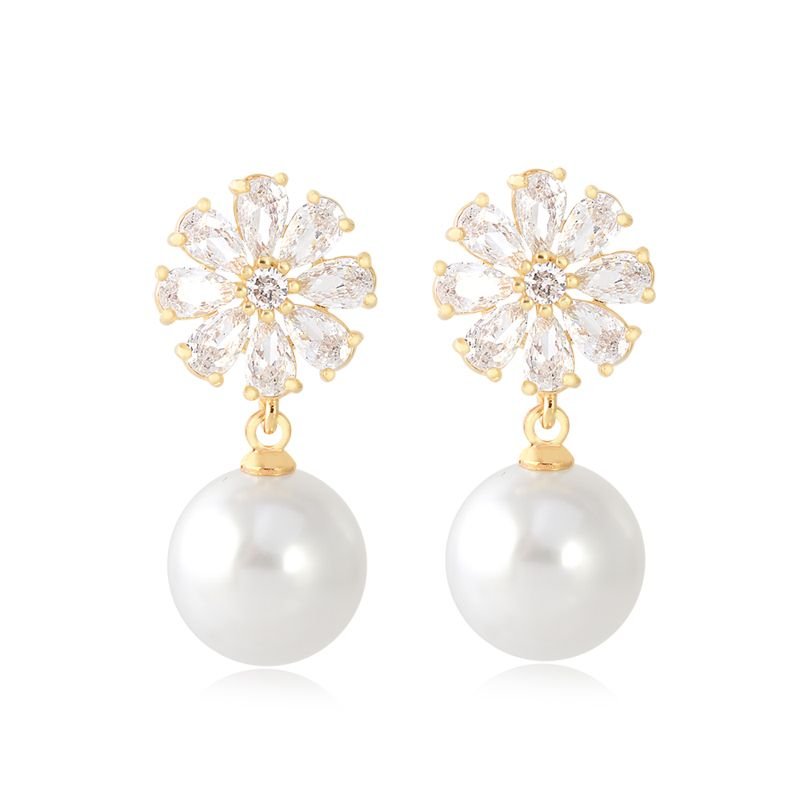 Um verdadeiro charme atemporal! O topo em formato de flor cravejada com zircônias brilhantes oferece um toque de delicadeza e sofisticação, enquanto a pérola pendente traz elegância e feminilidade à peça. Um brinco leve, porém marcante, ideal para noivas, festas ou ocasiões especiais.