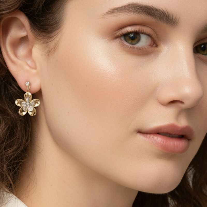 BRINCO FLOR COM RÓDIO – ELEGÂNCIA FLORAL E BRILHO SUTIL 🌸✨