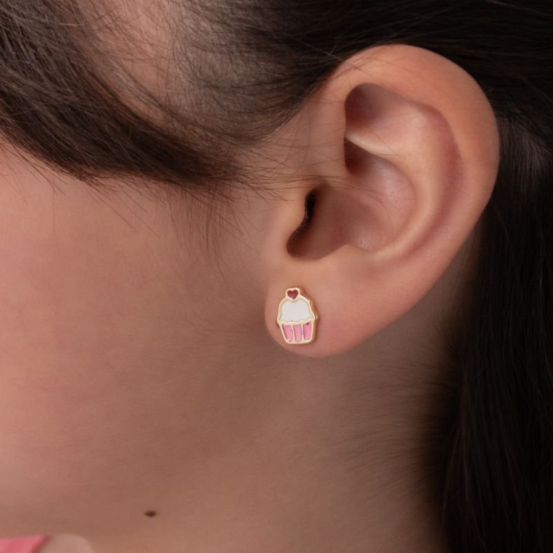 Da coleção Encanto do Dia das Crianças, este brinco infantil banhado a ouro 18k encanta com seu delicado design de cupcake com aplicação resinada, trazendo um toque divertido e colorido ao look dos pequenos. Seu tamanho ideal e acabamento cuidadoso garantem conforto e segurança para o uso diário infantil.