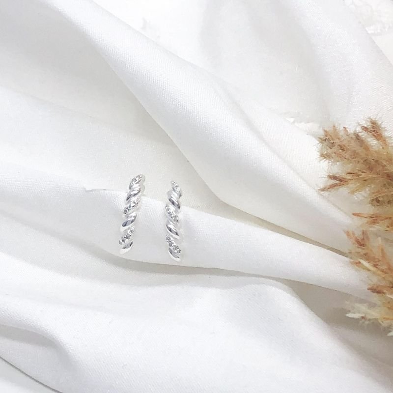 Este brinco em prata 925 traz um design torcido elegante que se destaca pela delicadeza e sofisticação. As pedras cravejadas (2x2x2) adicionam um brilho sutil e refinado, tornando a peça perfeita para quem busca estilo com discrição e elegância. Leve e confortável, é ideal para o uso diário ou para completar produções mais clássicas com um toque moderno.