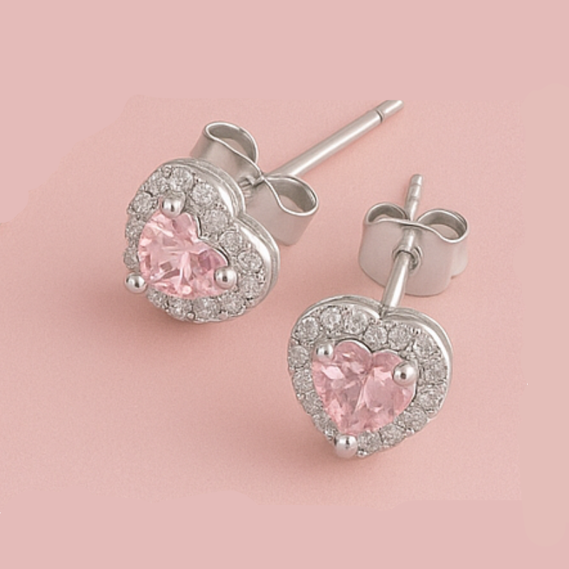 Compre agora o Brinco Prata 925 com Pedra Rosa e Zircônias e leve ainda mais brilho e amor para seu visual. Ou aproveite para montar o conjunto completo e surpreender no Dia dos Namorados! 💝