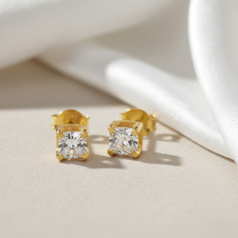 Brinco Quadrado em Zircônia – Elegância minimalista em cada detalhe 💛✨