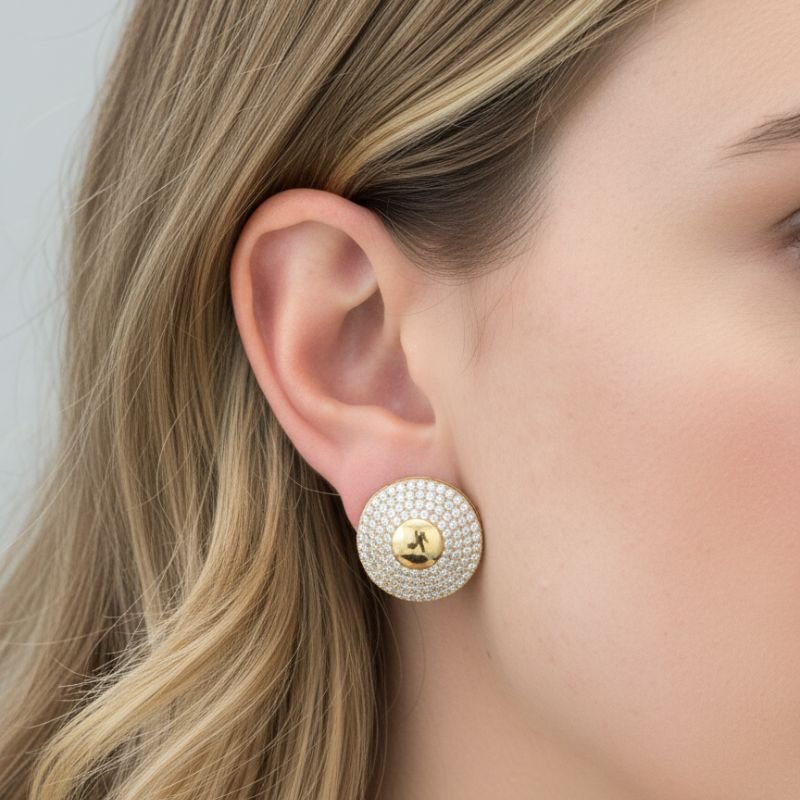 Clássico, sofisticado e marcante. Este brinco redondo é inteiramente cravejado com micro zircônias ao redor de um centro liso e polido, criando um contraste elegante que valoriza o rosto. Ideal para ocasiões especiais ou para quem ama um toque de brilho mesmo no dia a dia, é a peça perfeita para destacar sua personalidade com muito estilo.