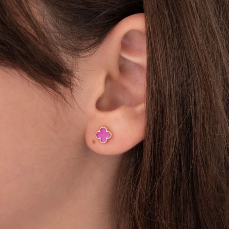 Este brinco banhado a ouro 18k traz o charme do trevo com aplicação resinada em tom rosa, perfeito para quem quer unir delicadeza e um toque de sorte no visual. Com design leve e tamanho ideal (2x2x2 cm), é uma peça versátil que valoriza qualquer look com um toque de cor e simbolismo.
