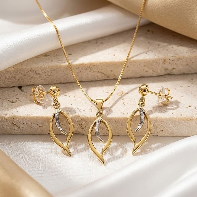 Um conjunto sofisticado que combina delicadeza, brilho e modernidade, perfeito para quem valoriza elegância em cada detalhe.
