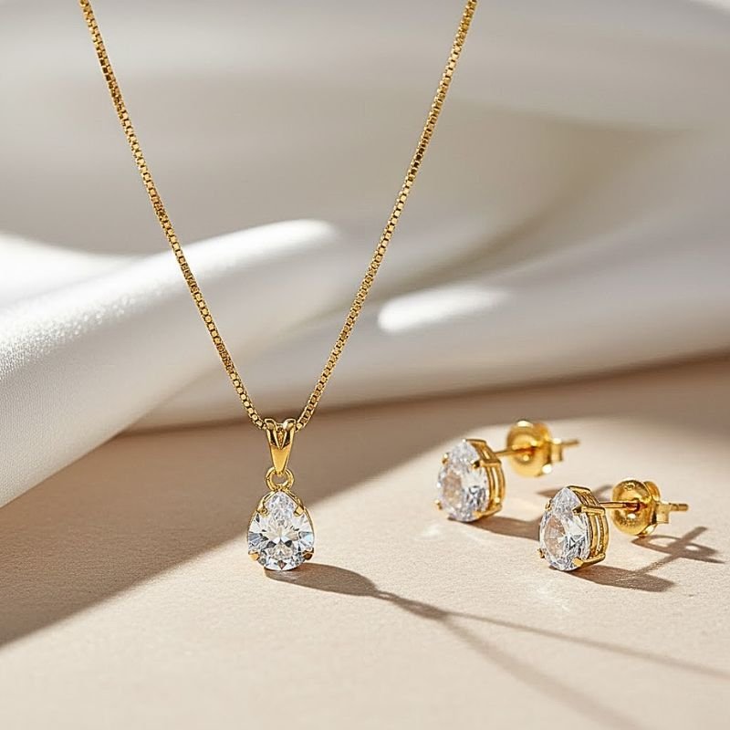 💎 Conjunto Gota com Zircônias – Elegância radiante em cada detalhe, por tempo limitado
