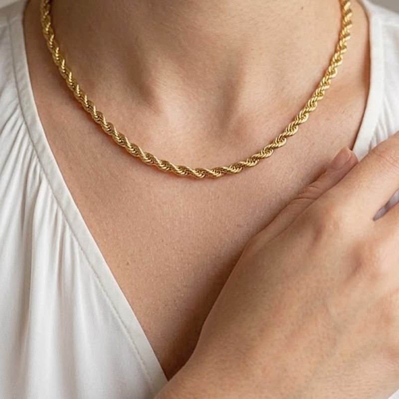 O cordão baiano 4 mm importado é sinônimo de imponência e sofisticação. Com seu trançado espiralado mais espesso, essa peça chama atenção pelo brilho intenso e acabamento luxuoso. Banhado a ouro 18k, é ideal para quem deseja um acessório de presença, que se destaca em qualquer produção – seja usado sozinho ou com pingentes de maior porte.