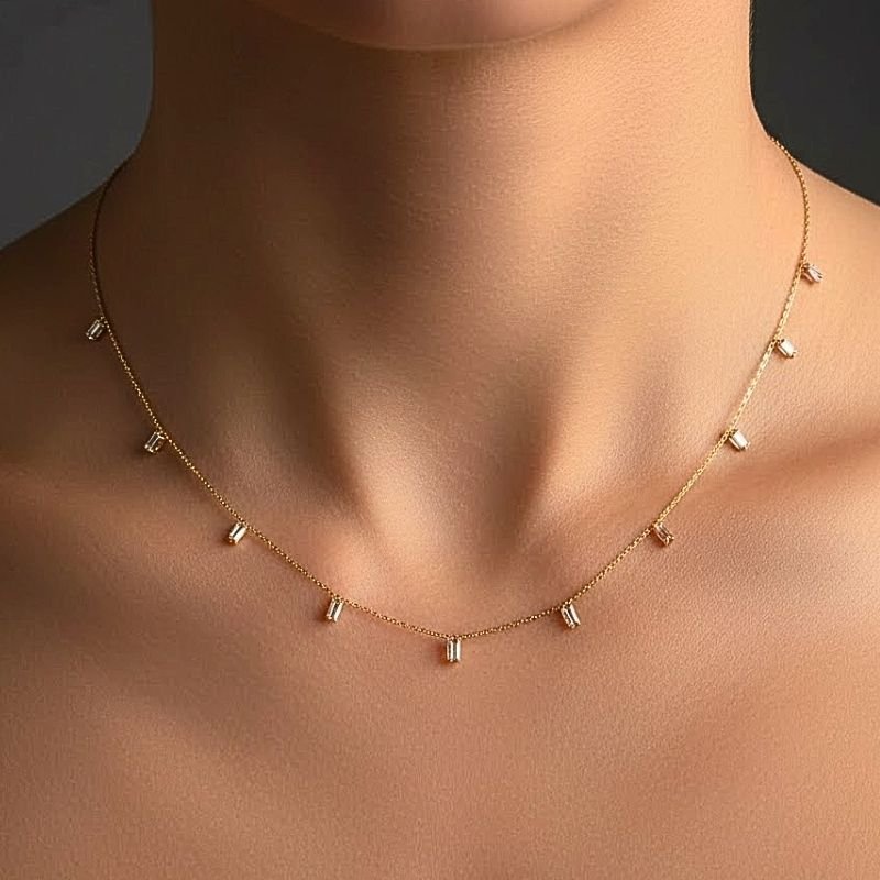 Essa gargantilha é a definição de delicadeza e sofisticação. Com pedras navete finamente lapidadas, ela traz um brilho sutil que valoriza o colo com leveza e feminilidade. Banhada a ouro 18k, é perfeita para quem busca um acessório refinado para o dia a dia ou ocasiões especiais.