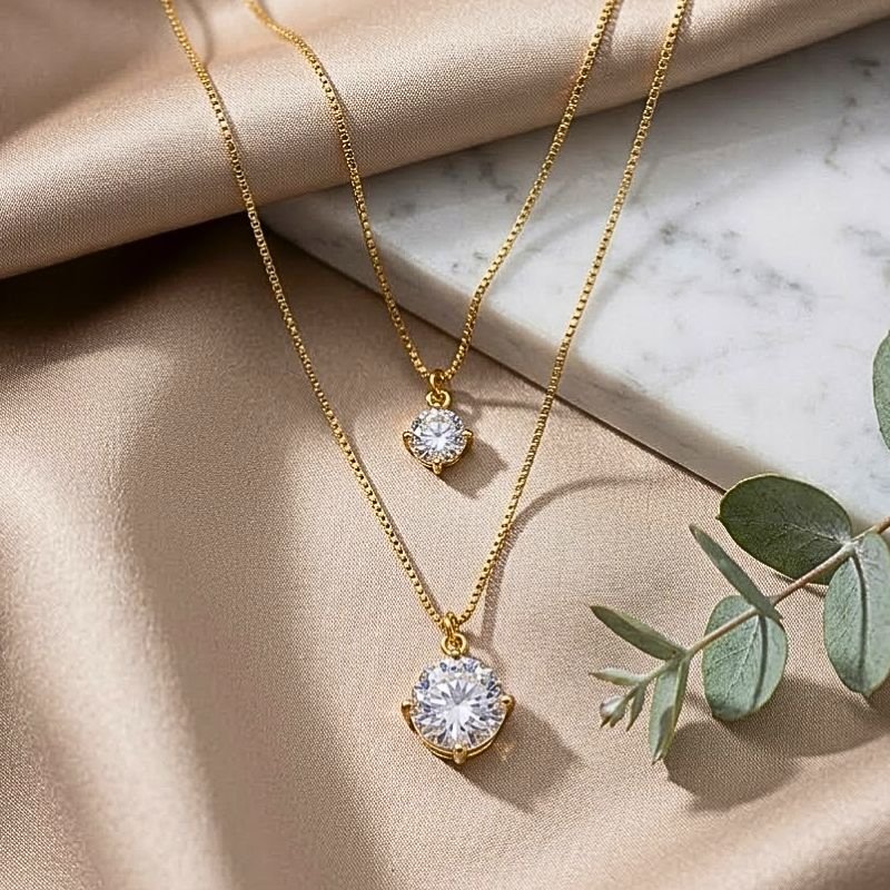 ✨ Gargantilha Dupla com Dois Pontos de Luz – Brilho em dobro, charme em cada detalhe