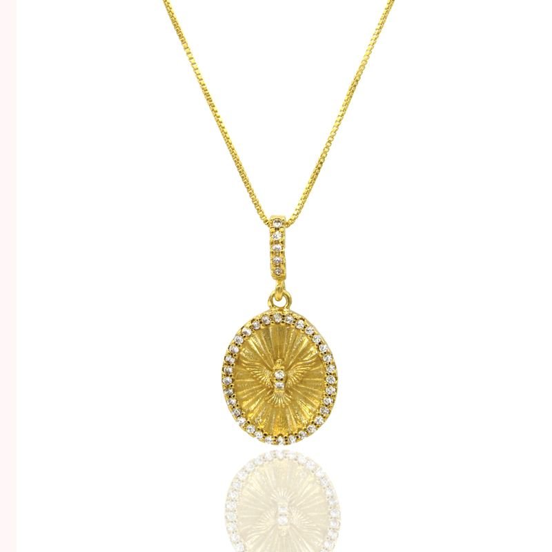 💎 Pingente do Espírito Santo com zircônias cravejadas em acabamento refinado