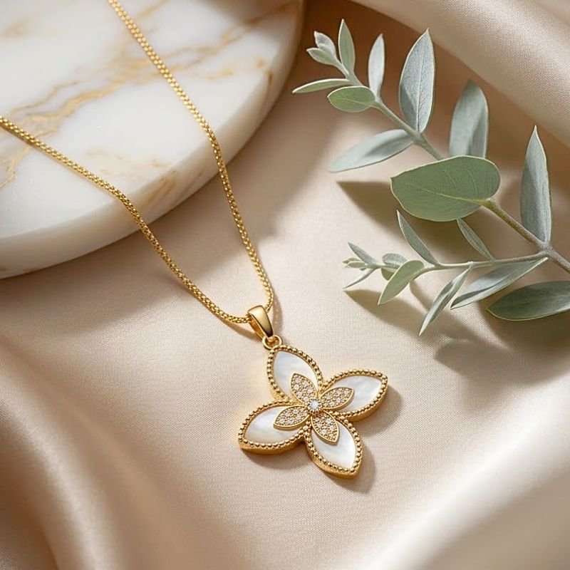 GARGANTILHA FLOR COM PÉROLA – DELICADEZA, ELEGÂNCIA E BELEZA NATURAL EM UM ÚNICO ACESSÓRIO 🌸💎
