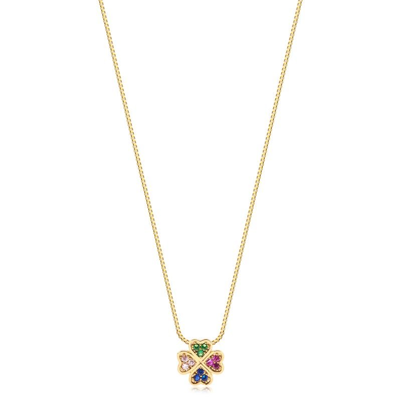Gargantilha com Pingente de Trevo de Pedras Coloridas – Banhada a Ouro 18k ✨