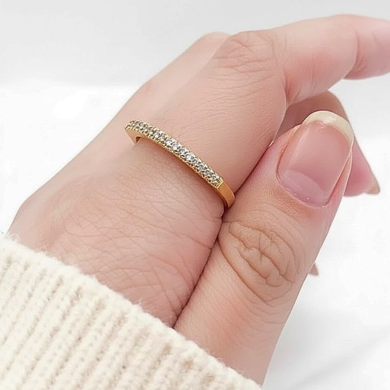 Meia Aliança com Zircônias Banhada a Ouro 18k – Elegância e Brilho em Cada Detalhe ✨💎