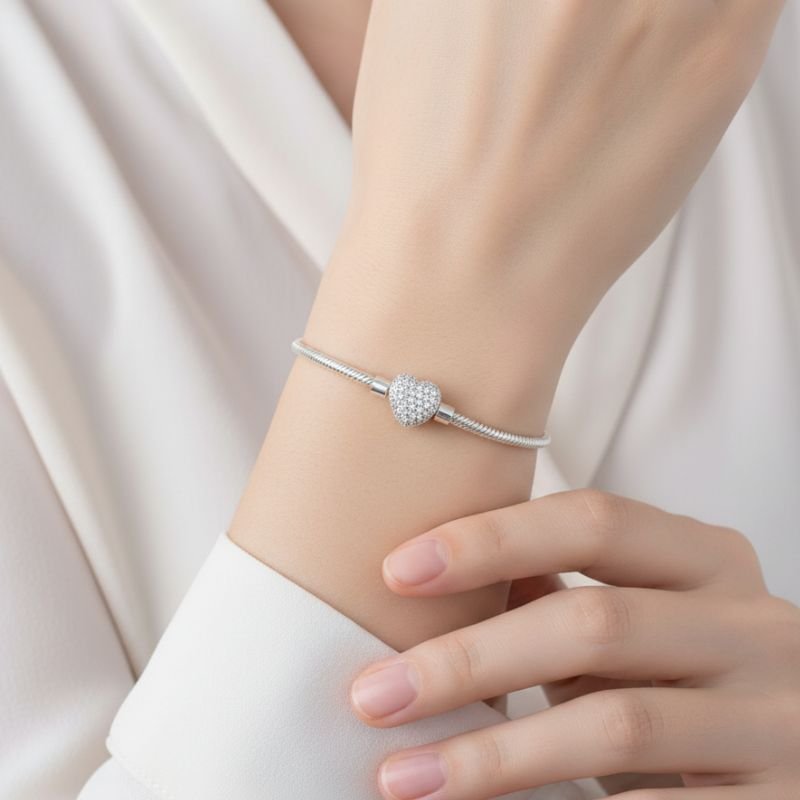 A Pulseira Pandora Prata 925 com Fecho Zircônias é uma semijoia sofisticada e delicada, perfeita para quem busca brilho e elegância em um único acessório. Seu fecho decorado com zircônias adiciona um toque de luxo à peça, tornando-a ideal para complementar o visual ou criar combinações com charms.