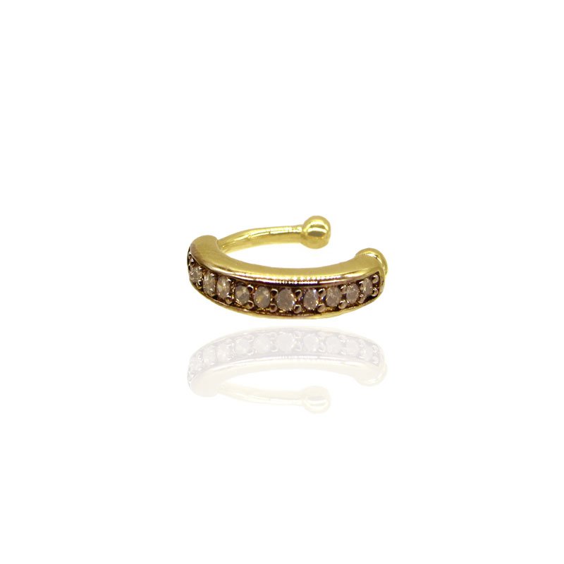 O Piercing Fake com Zircônias é o acessório perfeito para quem deseja um toque moderno e sofisticado sem precisar furar a orelha. Seu design elegante, cravejado com zircônias brilhantes, traz glamour e estilo em qualquer ocasião.