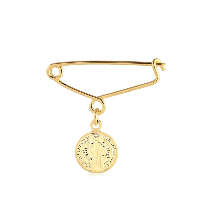 🙏 Pingente com alfinete banhado a ouro 18k com São Bento – Fé, proteção e um gesto de amor eterno