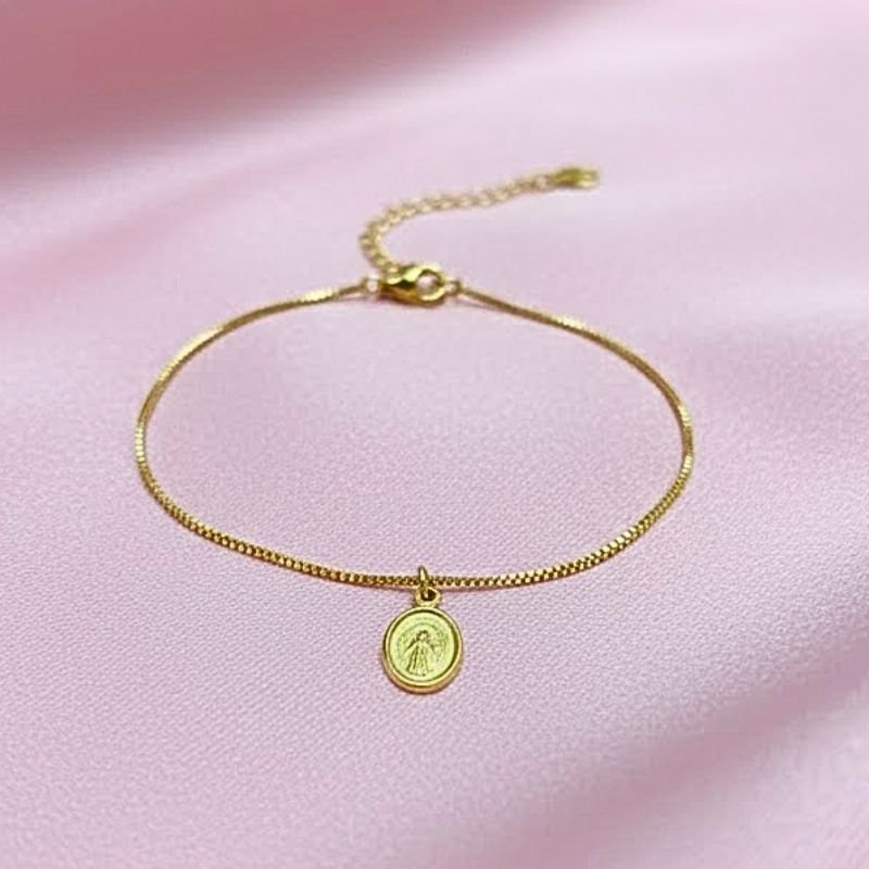 PULSEIRA INFANTIL DELICADA COM NOSSA SENHORA DAS GRAÇAS BANHADA A OURO 18K – FÉ E PROTEÇÃO ✨🙏