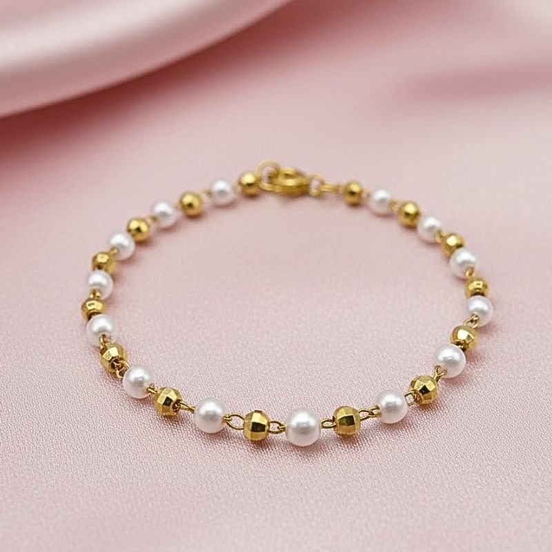PULSEIRA INFANTIL BOLINHAS E PÉROLAS BANHADA A OURO 18K – DELICADEZA E CHARME ✨🤍