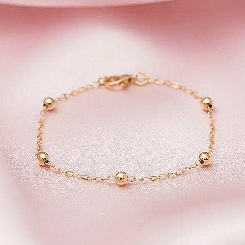 PULSEIRA INFANTIL BOLINHAS BANHADA A OURO 18K – DELICADEZA QUE ENCANTA ✨💛