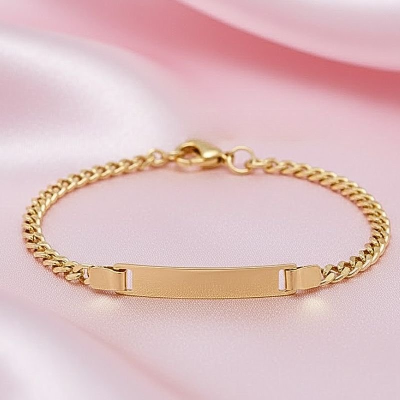 A Pulseira Infantil Chapa Banhada a Ouro 18K é uma joia delicada, atemporal e perfeita para crianças. Com design clássico de chapa lisa, ela transmite elegância e leveza, ideal para complementar qualquer look infantil de forma discreta e charmosa.