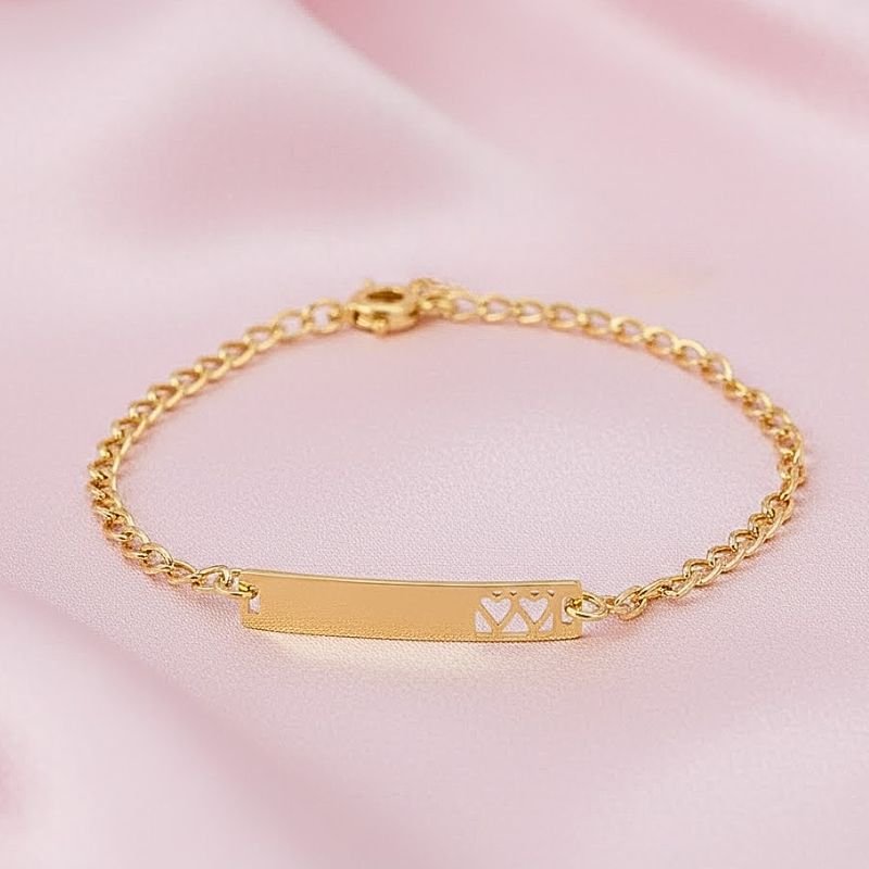 A Pulseira Infantil Placa Dois Corações Vazados Banhada a Ouro 18K é uma joia delicada e cheia de significado. Com dois corações vazados, ela transmite amor e cuidado, tornando cada momento ainda mais especial para as crianças.