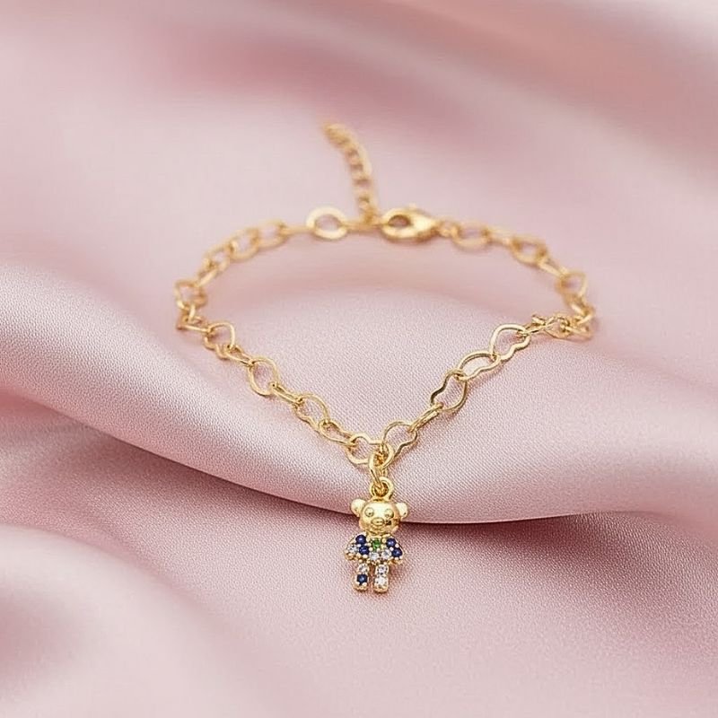 PULSEIRA INFANTIL URSO BANHADA A OURO 18K – FOFA E CHEIA DE CARINHO ✨🐻