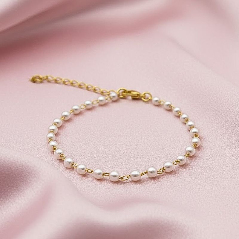 PULSEIRA INFANTIL PÉROLAS DELICADA BANHADA A OURO 18K – SUAVIDADE E ENCANTO PARA PRESENTEAR ✨🤍