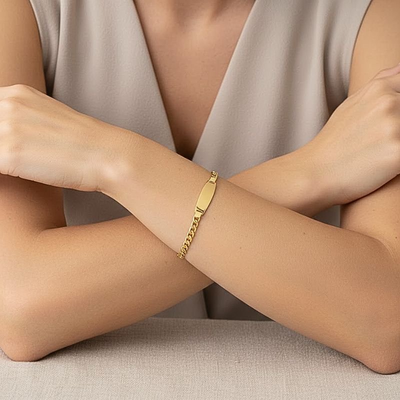 A Pulseira Placa Unisex com Cor Grume é uma semijoia moderna e sofisticada, ideal para quem busca um acessório elegante, neutro e versátil. Seu design unissex com detalhe em cor grume traz personalidade e estilo, tornando a peça perfeita para compor looks do dia a dia ou ocasiões especiais.