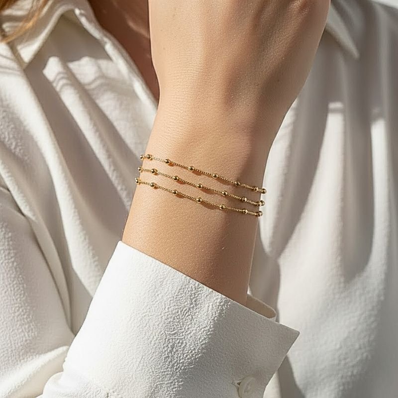 Adicione um toque de sofisticação e charme ao seu estilo com a Pulseira Tripla Bolinhas em Ouro 18K. A escolha perfeita para quem aprecia a elegância no minimalismo.