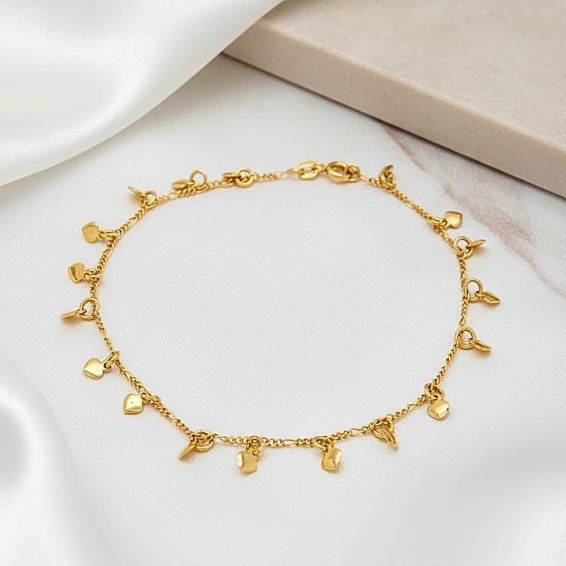 💖 Tornozeleira com Corações Banhada a Ouro 18K – Amor em cada detalhe