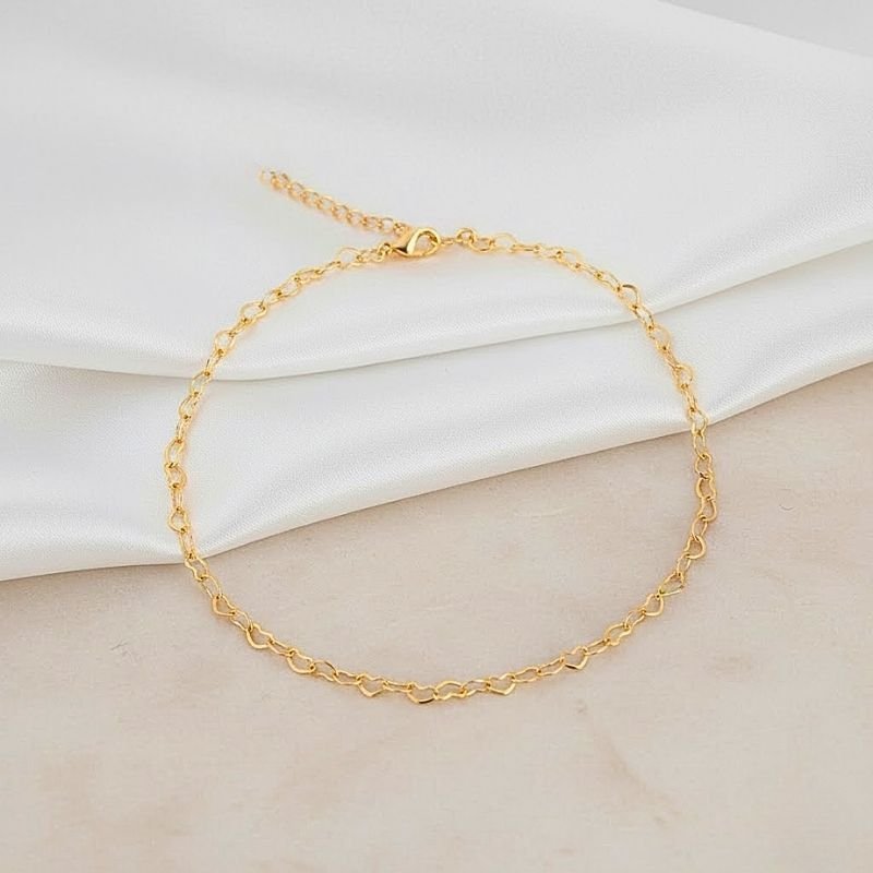 💛 Tornozeleira Corações Menores Folheada a Ouro 18K – Amor nos detalhes